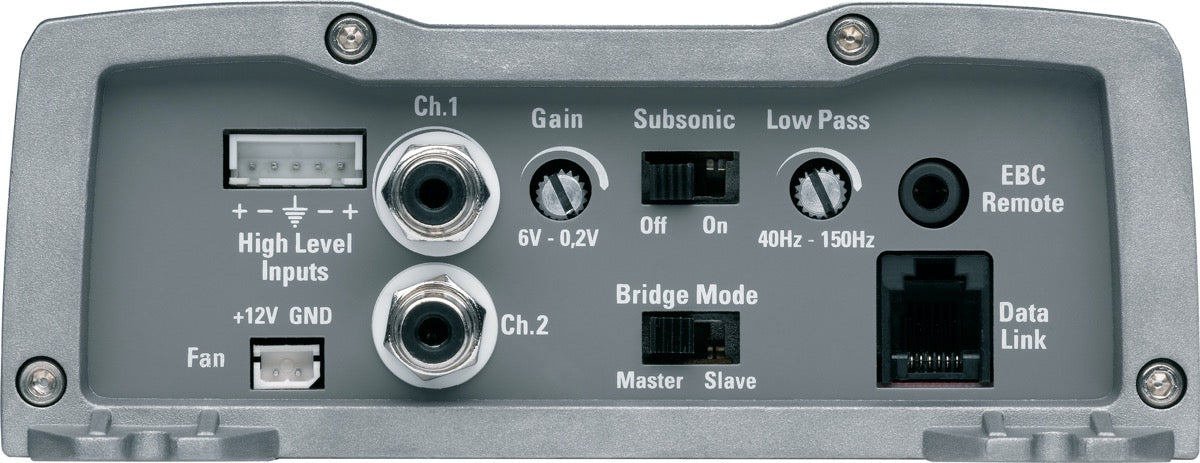 - 1x 2000 watts RMS en mode ponté (Bridge)