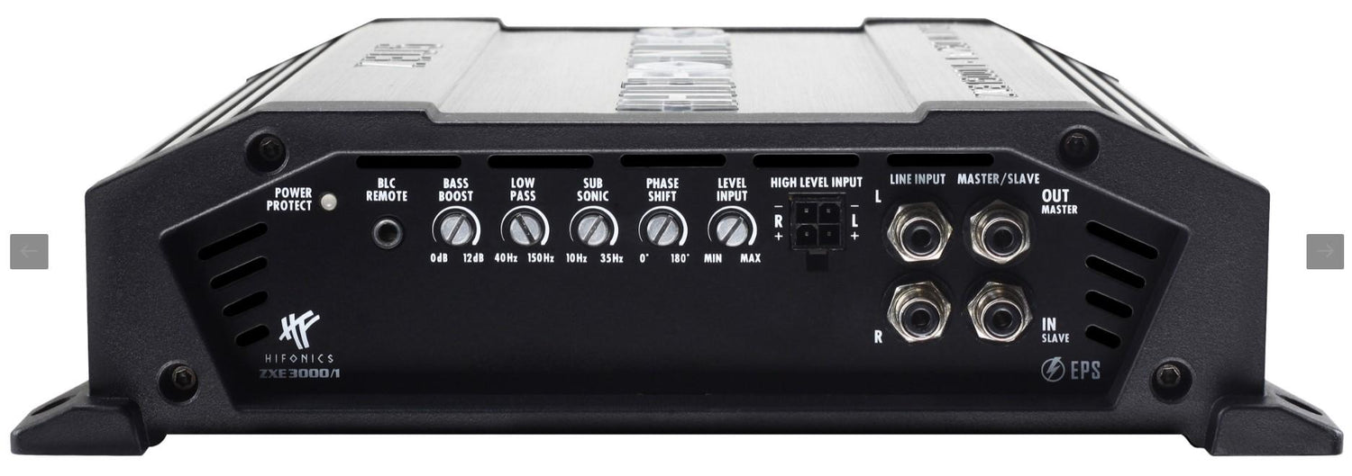 Les nouveaux amplificateurs HiFonics ZEUS EVOLUTION ZXE possèdent des caractéristiques hautement fonctionnelles en usine telles que des entrées de haut niveau avec EPS, une mise en marche automatique, une fonction start-stop, un déphasage, un filtre subsonique, une amplification des basses, une télécommande du niveau des basses et sont donc parfaits pour Utilisation dans les systèmes Car Hifi modernes. Trois amplificateurs mono numériques élargissent la gamme multicanal pour les applications de caisson de basses. La fonction maître/esclave est un autre point fort de l'équipement à bord. Si la puissance d'un amplificateur ne suffit pas, vous pouvez utiliser un deuxième amplificateur ZEUS ZXE identique et le connecter à l'aide d'un câble Cinch. Désormais, le 1er étage de puissance fait office de contrôleur et prend en charge la régulation du 2ème étage de puissance. Le point culminant est : la performance double. Le dissipateur thermique en aluminium gris brossé est en soi un régal pour les yeux. Les embouts noirs en fonte d'aluminium soulignent encore la valeur de la série ZEUS EVOLUTION ZXE . Le point culminant optique est le logo HiFonics lumineux, qui peut être commuté du bleu au blanc. Mais non seulement le logo est éclairé, mais les connexions d'alimentation et de haut-parleur brillent également en bleu HiFonics et offrent un autre point fort visuel.