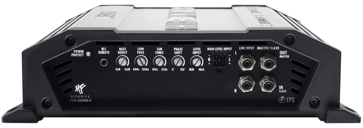 Les nouveaux amplificateurs HiFonics ZEUS EVOLUTION ZXE possèdent des caractéristiques hautement fonctionnelles en usine telles que des entrées de haut niveau avec EPS, une mise en marche automatique, une fonction start-stop, un déphasage, un filtre subsonique, une amplification des basses, une télécommande du niveau des basses et sont donc parfaits pour Utilisation dans les systèmes Car Hifi modernes. Trois amplificateurs mono numériques élargissent la gamme multicanal pour les applications de caisson de basses. La fonction maître/esclave est un autre point fort de l'équipement à bord. Si la puissance d'un amplificateur ne suffit pas, vous pouvez utiliser un deuxième amplificateur ZEUS ZXE identique et le connecter à l'aide d'un câble Cinch. Désormais, le 1er étage de puissance fait office de contrôleur et prend en charge la régulation du 2ème étage de puissance. Le point culminant est : la performance double. Le dissipateur thermique en aluminium gris brossé est en soi un régal pour les yeux. Les embouts noirs en fonte d'aluminium soulignent encore la valeur de la série ZEUS EVOLUTION ZXE . Le point culminant optique est le logo HiFonics lumineux, qui peut être commuté du bleu au blanc. Mais non seulement le logo est éclairé, mais les connexions d'alimentation et de haut-parleur brillent également en bleu HiFonics et offrent un autre point fort visuel.