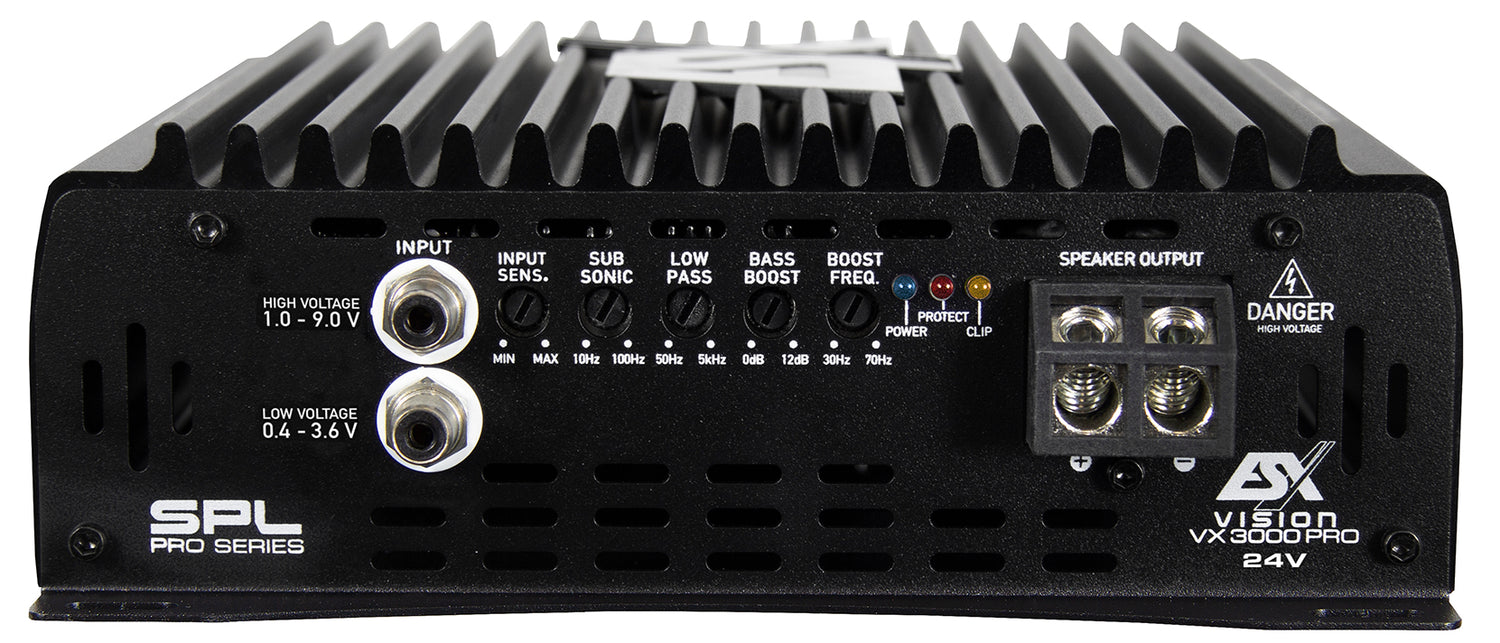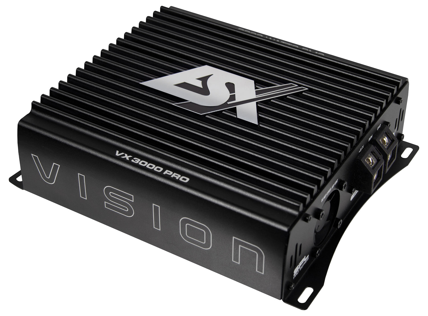 Avec les modèles VISION VX PRO , ESX ouvre un tout nouveau chapitre axé sur la performance et encore plus de performance. Les modèles de style classique, au nombre de cinq voitures mono, offrent des puissances incroyablement élevées de 2 200 à 13 000 watts RMS. Si vous prenez le petit VX2000PRO en main et jetez un œil à la fiche technique, vous avez du mal à y croire : avec un encombrement d'environ 20 x 19 cm et une puissance allant jusqu'à 2200 watts RMS sous 1 ohm Ω, il apporte même audio de voiture expérimenté Des roches primitives à admirer. Grâce à la technologie spéciale du circuit ESX, ces résultats ne font pas rêver ! Cela signifie que même les subwoofers les plus puissants peuvent être alimentés de manière adéquate.