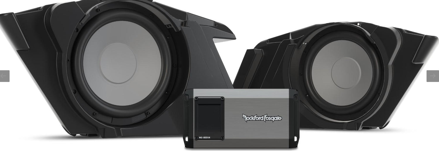 Performances de basses de niveau supérieur avec le système de caisson de basses double 20 cm (10") de 800 watts de Rockford Fosgate, spécialement conçu pour les modèles de tourisme Harley-Davidson® 2014+.