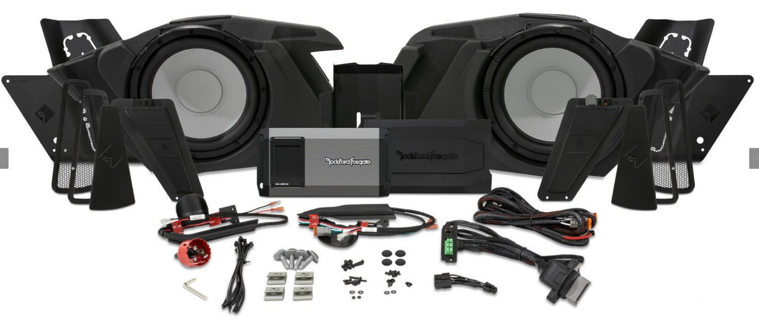 Enfin des basses pour votre vélo. Les deux caissons de basses et les enceintes de 10 pouces ont été spécialement conçus pour l'environnement des motos et offrent l'expérience audio sur route que vous attendiez, même à vitesse d'autoroute.