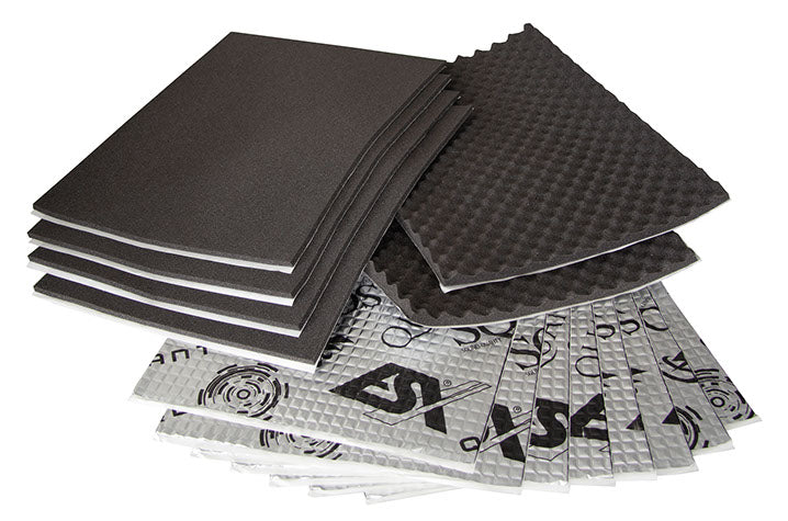 Les deux kits d'amortissement contiennent chacun deux plaques de mousse acoustique plane QSC7, quatre plaques de mousse acoustique crantée QSC15 et huit plaques de butyle d'aluminium. Le Quantum QDK1, plus économique, est composé de butyle d'aluminium Razor Mat QRM18, d'une épaisseur de 1,8 mm, parfaitement adapté aux systèmes et applications classiques et offrant déjà d'excellentes propriétés isolantes