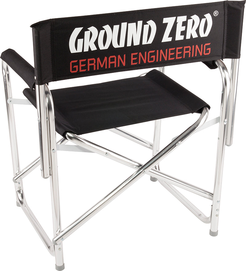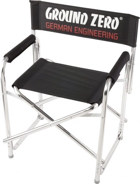 Chaise pliante en aluminium, noire avec imprimé GZ