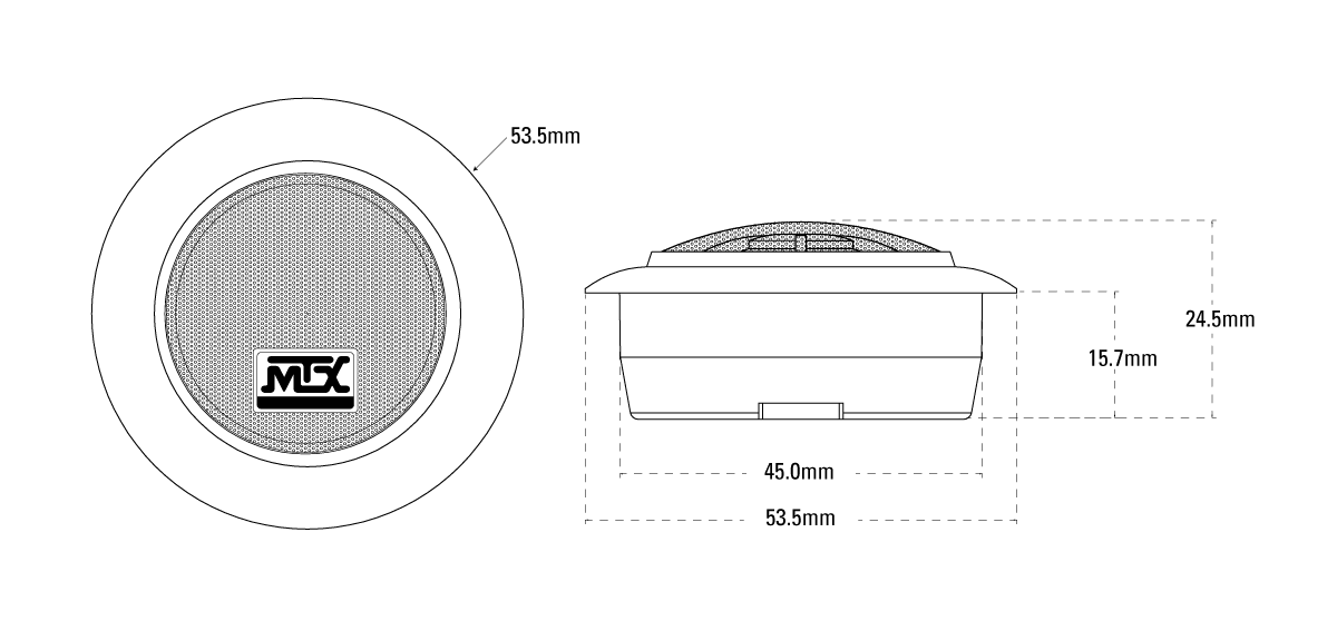 Les MTX TX225T sont des tweeters de 25mm de diamètre spécialisés dans la reproduction des hautes fréquences. Ce sont les tweeters des kits MTX TX250S et TX265S. Ils supportent 65W RMS et 450W Peak. Ils ont une impédance de 4Ω pour s'adapter à tous les amplificateurs, qu'ils soient externes ou intégrés à un autoradio. Leur petit diamètre extérieur permet de les installer facilement et partout. Derrière les rétroviseurs, sur le tableau de bord ou en haut de porte. Pour en profiter au maximum, il faut placer les tweeters le plus haut possible pour avoir une scène sonore la plus haute possible.