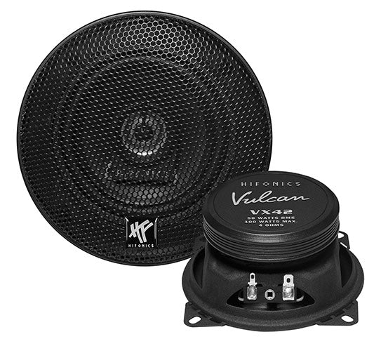 Avec la série VULCAN VX , HiFonics élargit sa gamme d'enceintes avec des modèles solides comme le roc optimisés en termes de rapport prix/performance qui ne laissent rien au fan de la chaîne hi-fi de voiture. Le système de composants VULCAN VX VX6.2C comprend des crossovers 12 dB de haute qualité avec réglage du niveau en 3 étapes et des tweeters en tissu détaillés de 25 mm. Les woofers médiums et les tweeters de l'ensemble de 16,5 cm sont disponibles séparément par paires. De plus, les systèmes VX6.2E et VX5.2E sont disponibles avec des câbles croisés faciles à installer.