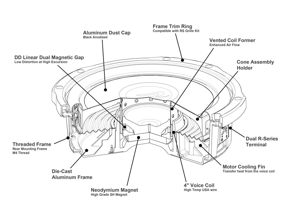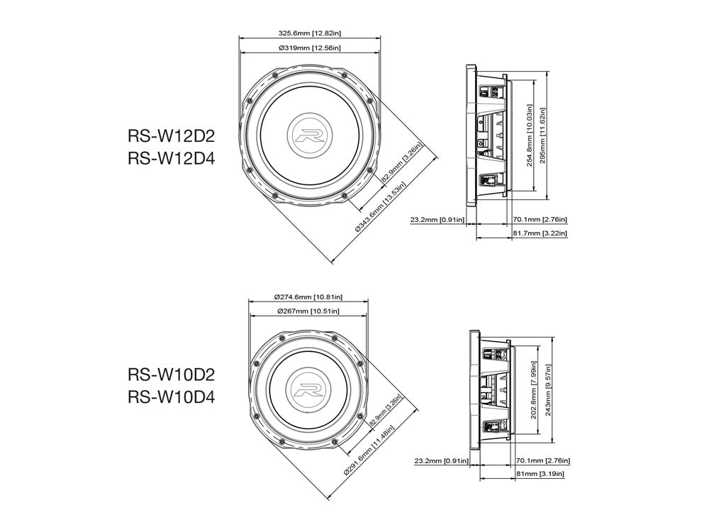 Subwoofer R-Series de 10" (25 cm) peu profond D4 ohms