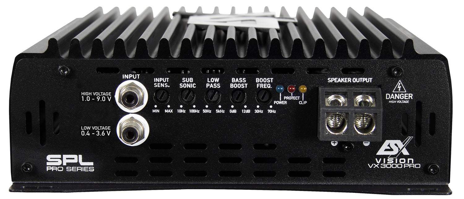 With the VISION VX PRO models , ESX opens a completely new chapter focused on performance and even more performance. The classic-style models, five mono cars in number, offer incredibly high powers of 2,200 to 13,000 watts RMS. If you take the small VX2000PRO in hand and take a look at the data sheet, you will find it hard to believe: with a footprint of about 20 x 19 cm and a power of up to 2200 watts RMS at 1 ohm Ω, it brings even experienced car audio Primitive rocks to admire. Thanks to the special technology of the ESX circuit, these results are not a dream! This means that even the most powerful subwoofers can be adequately powered.
