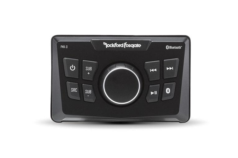 The PMX-0 is an ultra-compact digital media receiver designed for small systems and vehicles. This unit features Bluetooth streaming audio connectivity for Apple and Android devices, RCA auxiliary inputs, and front, rear, and sub RCA output connections. Control is provided by the water-resistant rotary encoder knob and white LED backlit buttons and provides instant sub-level control at your fingertips.
