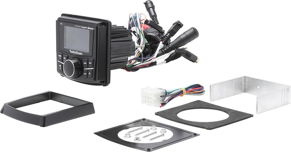 The PMX-3 is IPX6 rated and uses a water-resistant rotary encoder knob with white LED button illumination and front-mounted sub-level controls. Plus, with features like SiriusXM tuner compatibility, Pandora control capabilities, and Bluetooth audio streaming with album art support1, this unit becomes a true command center for any system. Output flexibility is provided with an internal 4 x 50 @ 2ohm amplifier or front and rear/sub output RCAs allowing for the addition of aftermarket amplifiers for additional power and output. Android devices equipped with limited functionality. Please see owner's manual for details.