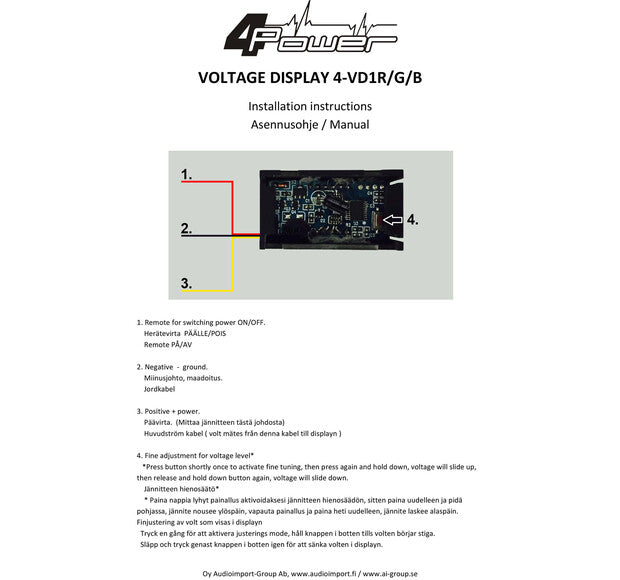 Blue LED voltage display 2 volts to 30 volts flush-mounted