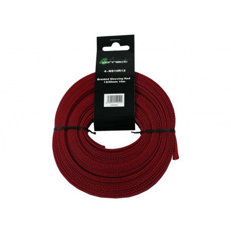 4 Connect Red Nylon Protective Sleeving 12/25mm 10mHigh quality and durable nylon protective sleeving to protect and beautify cables. Diameter 12mm, expandable up to 20mm, suitable for 8-20mm (16-50mm²) cable. Maximum continuous temperature 125 degrees Celsius, melting temperature 250 degrees Celsius.