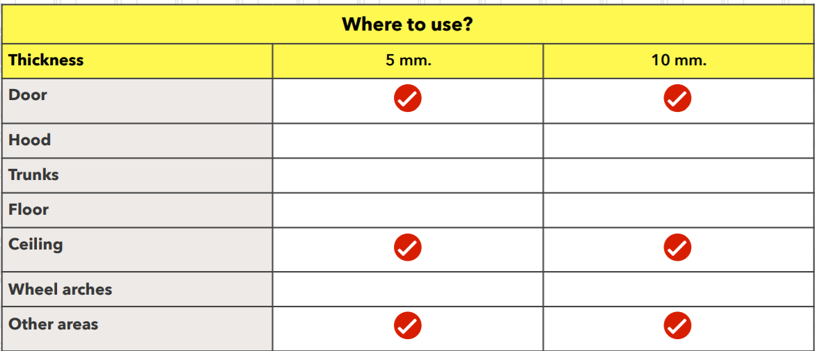 Absorption of medium and high frequency noise, as well as consolidation of plastic linings of the passenger compartment are the main points of application of the SilenceFix material. The sealing material is made on the basis of polyurethane impregnated with a polymer composition, it is self-adhesive and durable. It easily deforms, compresses and restores its initial thickness. It is widely used as a soundproofing layer.