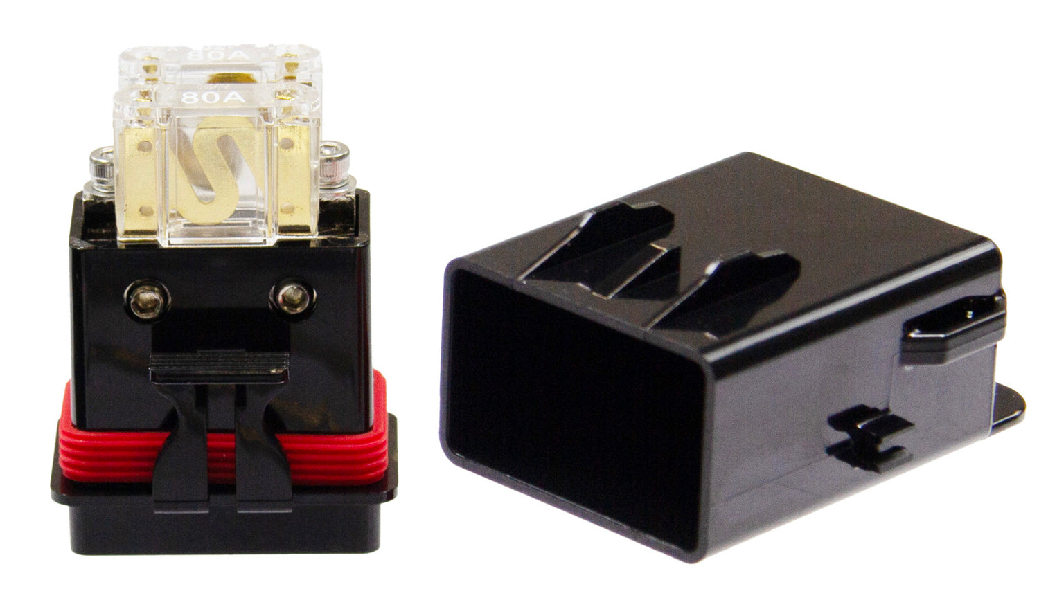 Included: 2 Maxi-Fuse 80A fuses, 1 20mm² silicone gasket and 1 50mm² silicone gasket , 2 Allen keys
