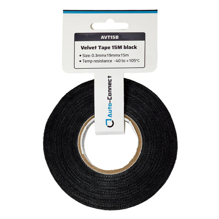 un rouleau de 15 mètres de ruban adhésif velours pour l'automobile. Ce ruban offre une isolation phonique et une grande flexibilité à l'installation, ce qui le rend idéal pour regrouper les fils et créer des faisceaux de câbles propres et fiables.