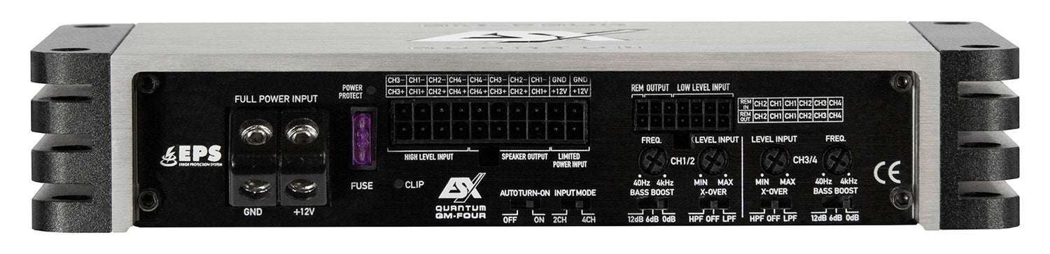 : The powerful QM-FOUR amplifier is now available for 4-channel applications. Those who want to drive a separate subwoofer can now use the new QM-ONE monoblock. Both amplifiers deliver an impressive 360 watts RMS and are visually perfectly matched. All models use modern, high-performance Class D technology, combined with EPS®, high-end features, and perfect sonic characteristics. The QM-ONE monoblock is not only the perfect partner for the QM-FOUR aesthetically. If a separate woofer is also to be powered, its area of application is clearly defined. With a power output of 360 watts RMS at 2 Ω, there is plenty of steam.