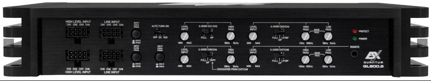 Les amplificateurs multicanaux ESX utilisent la technologie innovante Dynamic Headroom (DHR) pour atteindre une puissance de sortie RMS maximale plus élevée dans les applications multicanaux typiques. Cette technologie montre ses atouts notamment lorsque tous les canaux ne nécessitent pas la pleine puissance sur l'ensemble du spectre de fréquences en même temps. Plus d'informations dans le manuel d'utilisation .