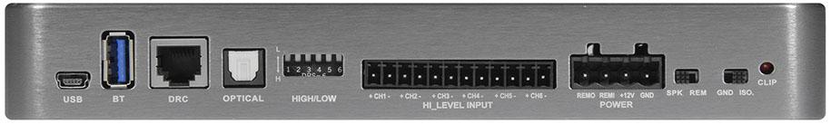 Toutes les fonctions telles qu'une affectation d'entrée et de sortie configurable individuellement, un mixage de haut niveau, un égaliseur paramétrique 31 bandes, une correction de la durée d'exécution et des paramètres de filtrage peuvent être ajustés de manière optimale via APP ou PC. Comme avec les amplificateurs D8 et M6, il est également possible avec le DSP68PRO de connecter le dongle Bluetooth® en option pour le streaming audio et la télécommande numérique DRC1. Il y a aussi une entrée stéréo audio HD optique et une entrée AUX stéréo via des prises cinch.