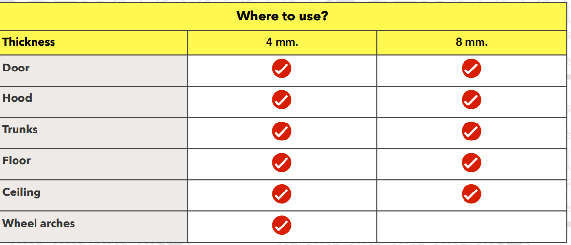 Matériau d'isolation acoustique et thermique. Il s'agit d'un matériau plastique léger, qui a une structure à cellules fermées, il n'absorbe pas l'humidité, étant de longue durée. Il offre une parfaite isolation phonique et thermique de l'habitacle, permet de garder la fraîcheur longtemps dans la chaleur, et au chaud quand il fait froid.