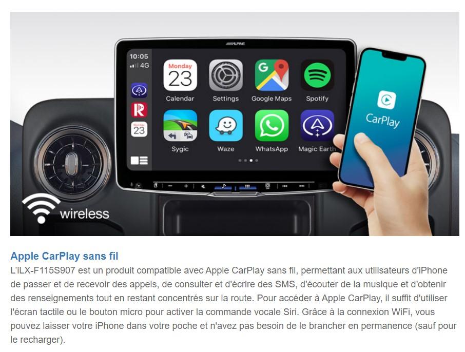 Station multimédia Halo11, avec DAB+ et compatibilité Apple CarPlay / Android Auto pour Mercedes Sprinter 907. L’iLX-F115S907 est doté d'un immense écran tactile haute résolution (WXGA) de 11 pouces et est livré avec tous les éléments nécessaires à son installation (faisceau de câbles plug-and-play, interface CAN, support, etc…). L’écran se trouve dans un boitier mince qui s’intègre parfaitement à votre tableau de bord. On peut également régler la hauteur et l’angle d’affichage afin d’obtenir la meilleure position et garantir un confort maximal au conducteur.