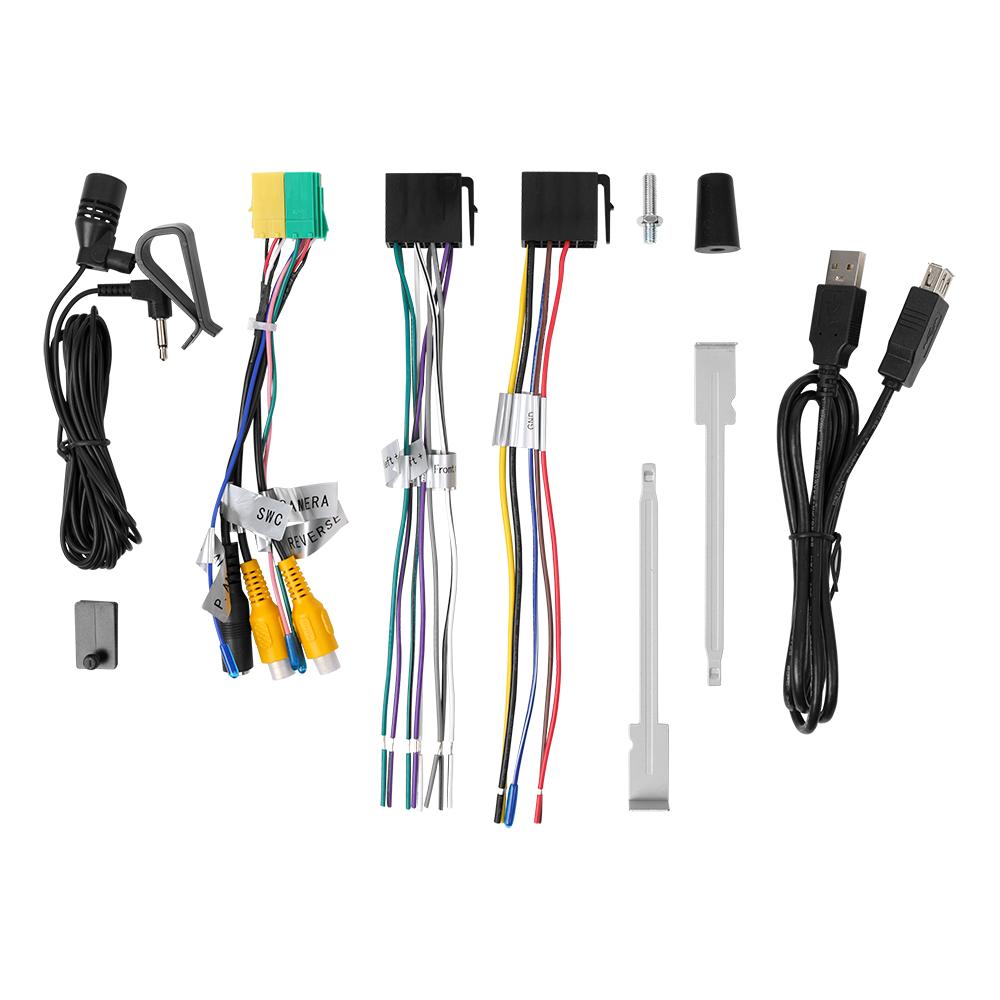 - Câblage standard pour autoradio 2-DIN (alimentation 12–14,4 V, connecteurs ISO / standard véhicule)