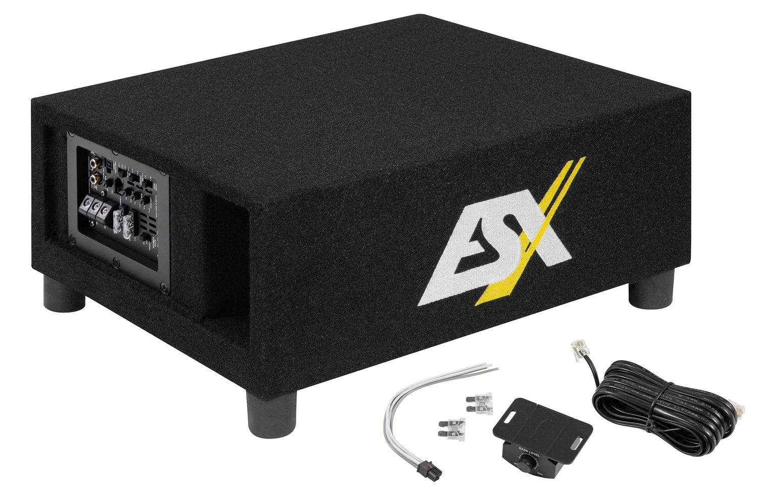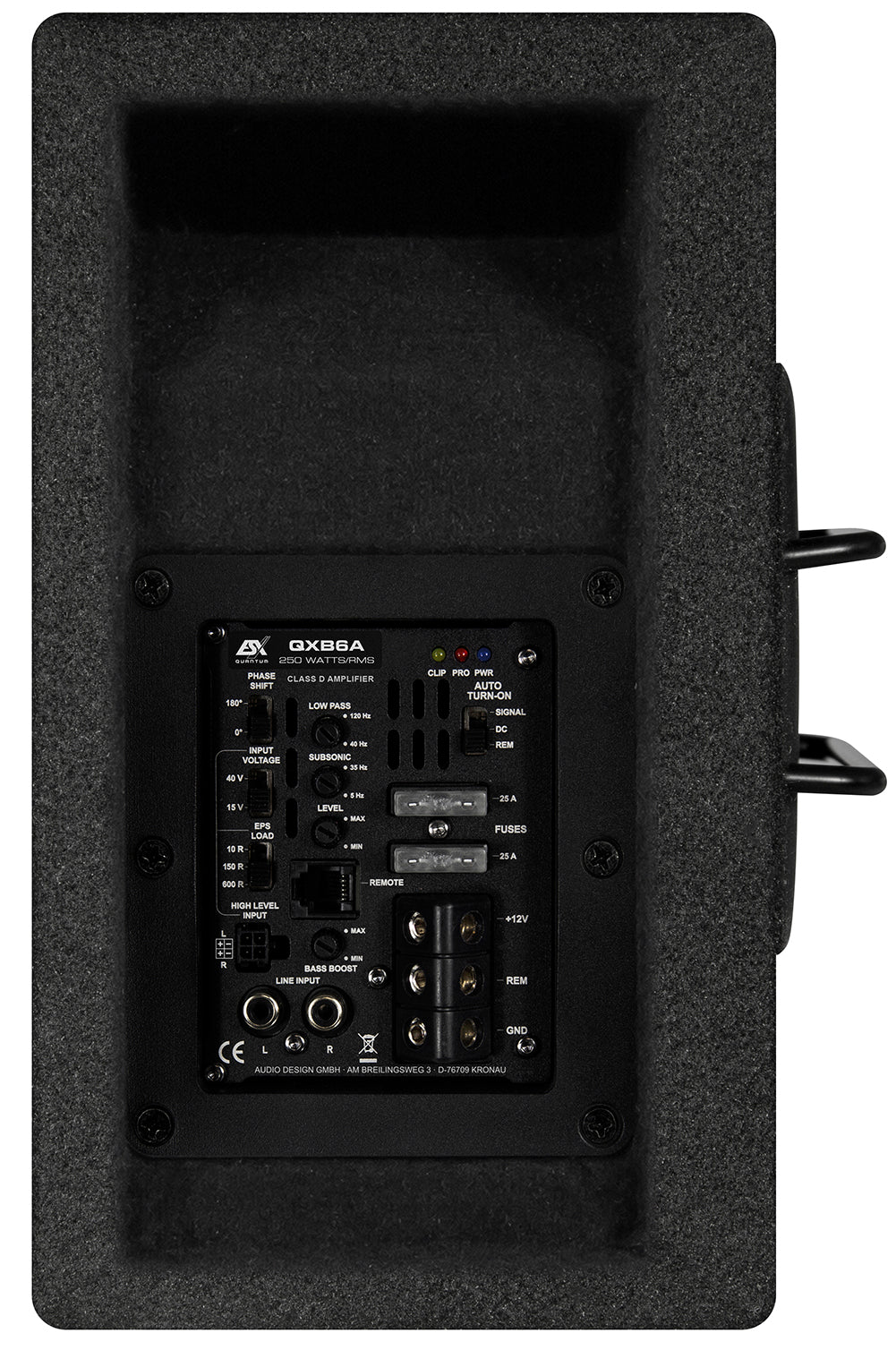 ESX utilise des modules actifs POWER4 de haute qualité et primés , particulièrement efficaces avec un rendement allant jusqu'à 84 %. Grâce aux derniers circuits de classe D et à EPS PRO, ces modules sont même préparés pour être connectés à des véhicules très modernes. Les basses peuvent être réglées depuis le siège du conducteur à l'aide de la télécommande filaire incluse.