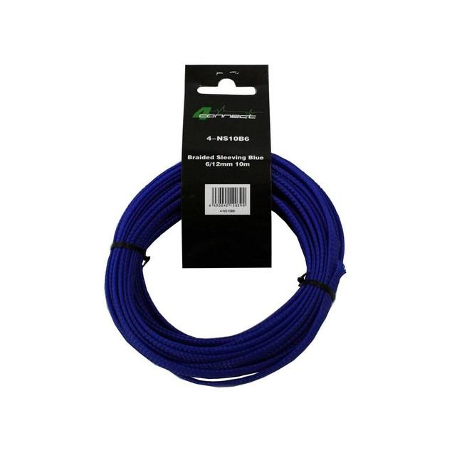 Gaine de protection en nylon 4 Connect bleu 6/12mm 10mGaine de protection en nylon de haute qualité et durable pour protéger et embellir les câbles. Diamètre 6 mm, extensible jusqu'à 12 mm, convient aux câbles de 4 à 12 mm. Température maximale continue 125 degrés Celsius, température de fusion 250 degrés Celsius.