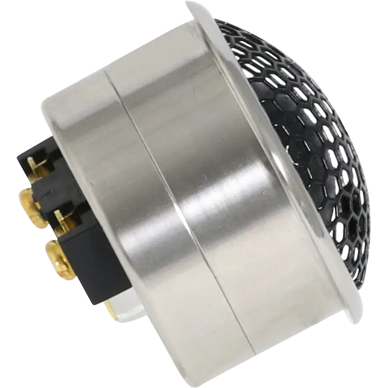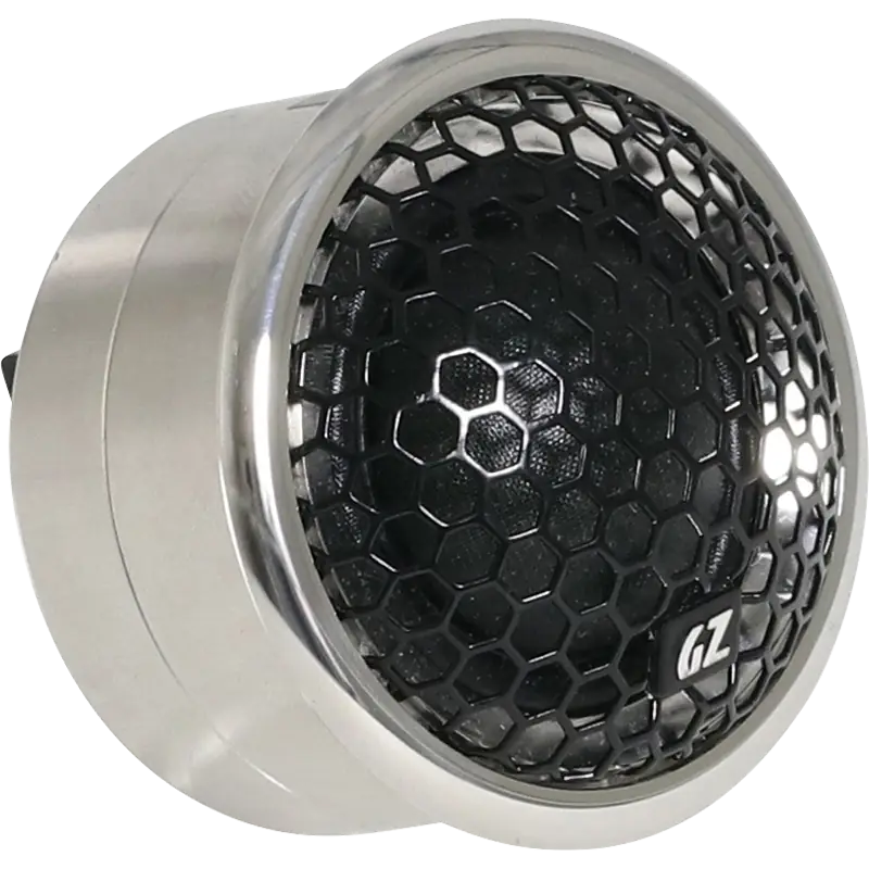 GZPT 28SQ : Tweeter à dôme en soie de 28 mm, avec moteur néodyme, boîtier en acier inoxydable poli et chambre couplée amortie pour des aigus clairs et détaillés.