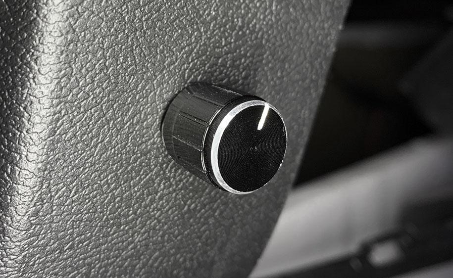 Il existe plusieurs options pour installer le contrôleur. Probablement la solution la plus propre et la plus belle : si vous percez un petit trou dans un endroit approprié du véhicule, où il y a de l'espace derrière et que rien n'est endommagé, vous pouvez pousser l'axe du régulateur de niveau à travers l'ouverture. Serrez le contre-écrou et fixez le bouton de la télécommande, c'est fait. Maintenant, seul le petit bouton est visible. Un support de montage est également inclus si cette option n'est pas une option
