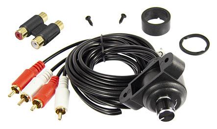Le câble d'entrée RCA est extra long à 1,2 mètre afin qu'il puisse être connecté directement derrière l'autoradio sans câble supplémentaire. Selon l'endroit où l'amplificateur est installé, le côté sortie peut être connecté directement à l'entrée de l'amplificateur ou étendu à l'aide du couplage RCA inclus et d'un câble RCA en option.