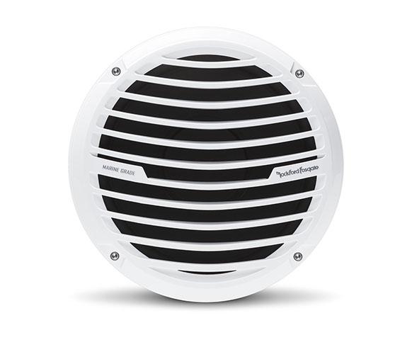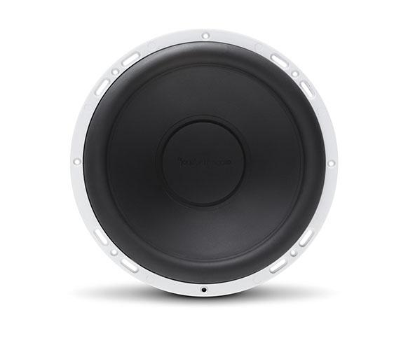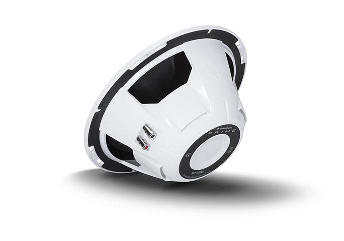 Le RM112D4 est un subwoofer blanc de 12 pouces conçu avec une technologie d'étanchéité adaptée aux applications nautiques ou de sports motorisés. Il dispose d'une calandre moulée en couleur 100% stable aux UV. Ce modèle peut être utilisé dans des installations de chicanes scellées, ventilées ou infinies.
